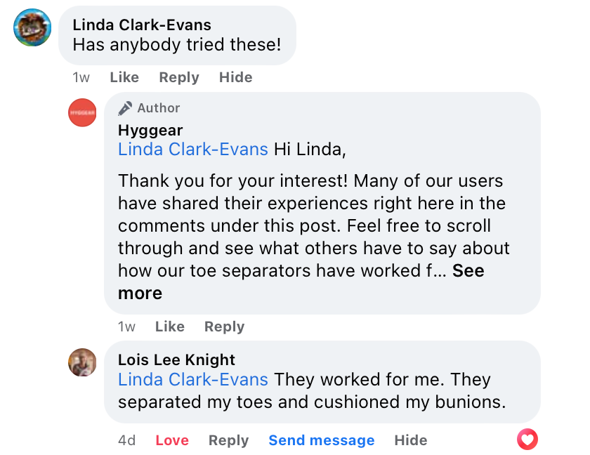 Hyggear™ ist auf innovative Gesundheitsprodukte spezialisiert. Gemeinsam haben wir den Zehentrenner aus Silikon für jedermann zugänglich gemacht . Er ist erschwinglich, einfach anzuwenden und sorgt für eine spürbare Verbesserung Ihrer Fußgesundheit – und löst das Problem ein für alle Mal.